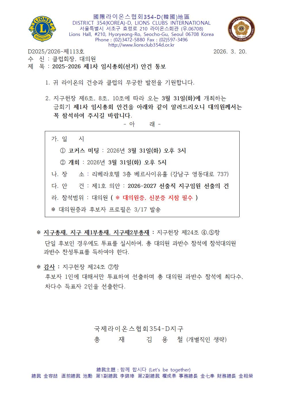 2025-2026 Á¦1Â÷ ÀÓ½ÃÃÑȸ(¼±°Å) ¹× Á¦3ȸ Áö±¸ÀÓ¿øÈ¸ °³ÃÖ Å뺸ÀÇ °Ç