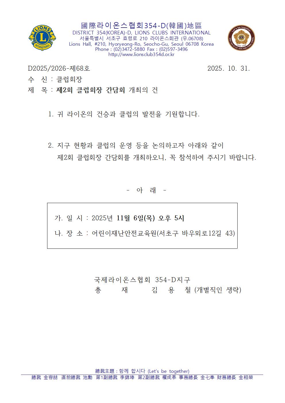 Á¦2ȸ Ŭ·´È¸Àå °£´ãȸ °³ÃÖ ¾È³»